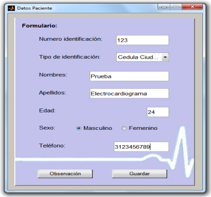 Resumen— En este proyecto, fue diseñado un dispositivo electrocardiógrafo que cuenta con diagnóstico para la derivación DII, permitiendo la visualización de las demás derivaciones, una a su vez. De igual modo, el dispositivo electrocardiógrafo, permite realizar la prueba de electrocardiograma (ECG) de forma inalámbrica para facilitar la aplicación de dicha prueba en cualquier lugar o situación. El prototipo está diseñado para facilitar la aplicación de la prueba de ECG en circunstancias cotidianas y desde la comodidad de su hogar, sin perder la eficacia en la prueba. No se puede olvidar que los resultados de la misma, deben ser verificados por personal cualificado. La aplicación está desarrollada en MATLAB, por lo tanto, el PC (computador personal) debe tener una licencia para su uso. Este software trabaja directamente con el hardware del dispositivo y lo hace en tiempo real. Fue diseñado de manera intuitiva para facilitar su uso. En este orden de ideas, cabe destacar la función de diagnóstico de enfermedades con la que cuenta la aplicación. Es una gran herramienta a la hora de analizar la información. Las pruebas son recopiladas y almacenadas digitalmente en un archivo con formato PDF, en el que se imprimen los datos personales del paciente y los resultados más relevantes de la prueba de ECG. Es importante destacar que estos archivos se pueden compartir a través de correo electrónico desde el software diseñado. Sin olvidar que el software tiene una base de datos donde se almacenan las pruebas realizadas.