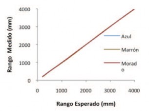 Siendo 𝑎 y 𝑏 los parámetros normales de una línea, 𝑑 la distancia del sensor de rango al objetivo, y 𝑟𝑒𝑠𝑝𝑒𝑟𝑎𝑑𝑜 el valor de rango esperado en la medición.