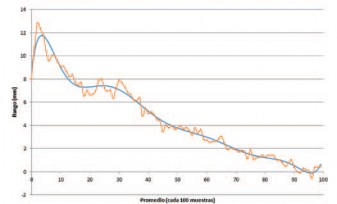 Figura 5. Regresión polinómica promediando las lecturas de rango cada 100 muestras.